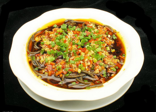 “蕨根粉”的樣子看上去就是黑色的粉絲,它是從野生蕨菜的根里提煉出來(lái)的淀粉類做成的粉絲食品。因?yàn)檗Р说母亲仙?,所以做出的粉絲也就成了“黑粉絲”。蕨根粉保留了蕨菜根里大部分營(yíng)養(yǎng)(涼粉、粉絲營(yíng)養(yǎng)與原料比損失的多且豆粉的不易消化),而“蕨根”對(duì)人體的保健作用是根莖類食物里名列前茅的,這也是符合顏色越深的,營(yíng)養(yǎng)越高規(guī)律的又一個(gè)例子。